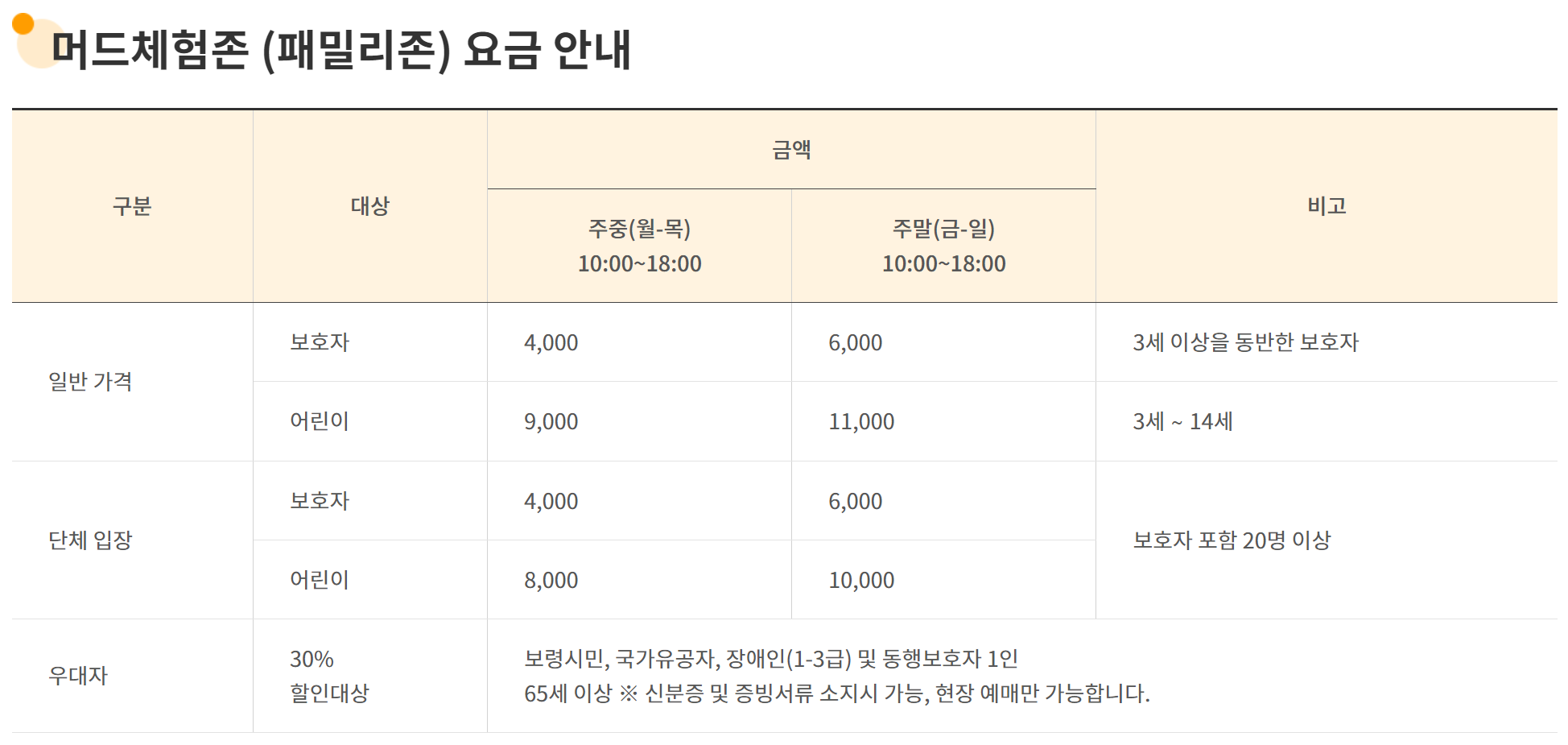 패밀리존 : 10:00 ~ 18:00 / 브레이크타임 13:30 ~ 14:30
